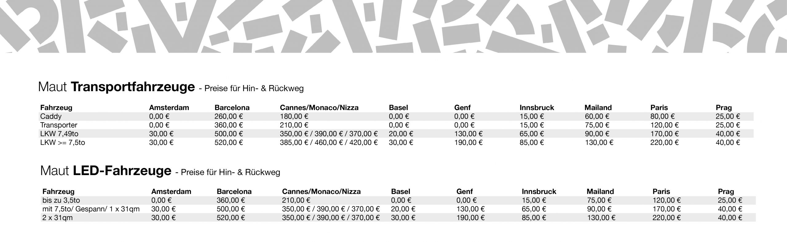 Hier können die Preise für Direktkurier-Transporte berechnet werden. Zur Verifizierung sind Direktkurier-Transporte direkt beim Transporteur (Maintaler, H&M-Kuriere) anzufragen.
